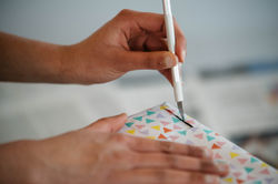 Use the pencil again to free-hand a large opening (circle or square) that's big enough for your extension cord on one of the end sides.