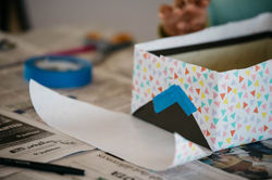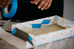 Wrap both the box and the lid with wrapping paper, scissors, and tape.