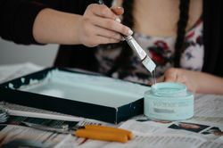 Paint all surfaces except the back and the bottom edge and let dry. If the paint is thin, add a second coat and let dry.